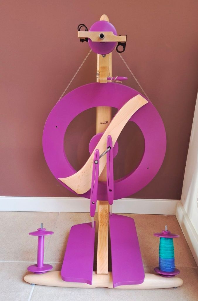 Sinds deze week heb ik een nieuw wiel. Nadat ik jaren vrijwel alles van Ashford heb gekocht (nog steeds zeer tot mijn tevredenheid) heb ik besloten om eens naar een ander merk te kijken. Mijn vaste winkel had een kortingsactie op een aantal Kromski wielen en omdat vooral hun Fantasia zó anders is dan mijn heerlijke Traditional leek het me een goed idee om eens wat anders te proberen.